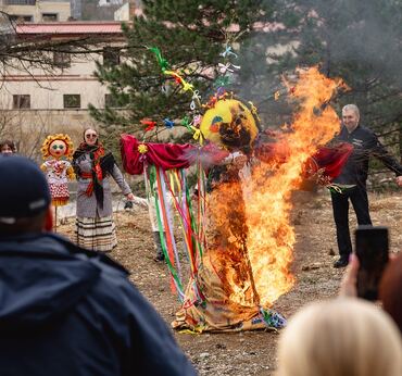 Завершим торжество совместным обрядом — сожжём чучело Масленицы, чтобы проститься с зимой и встретить весну с радостью и надеждой.