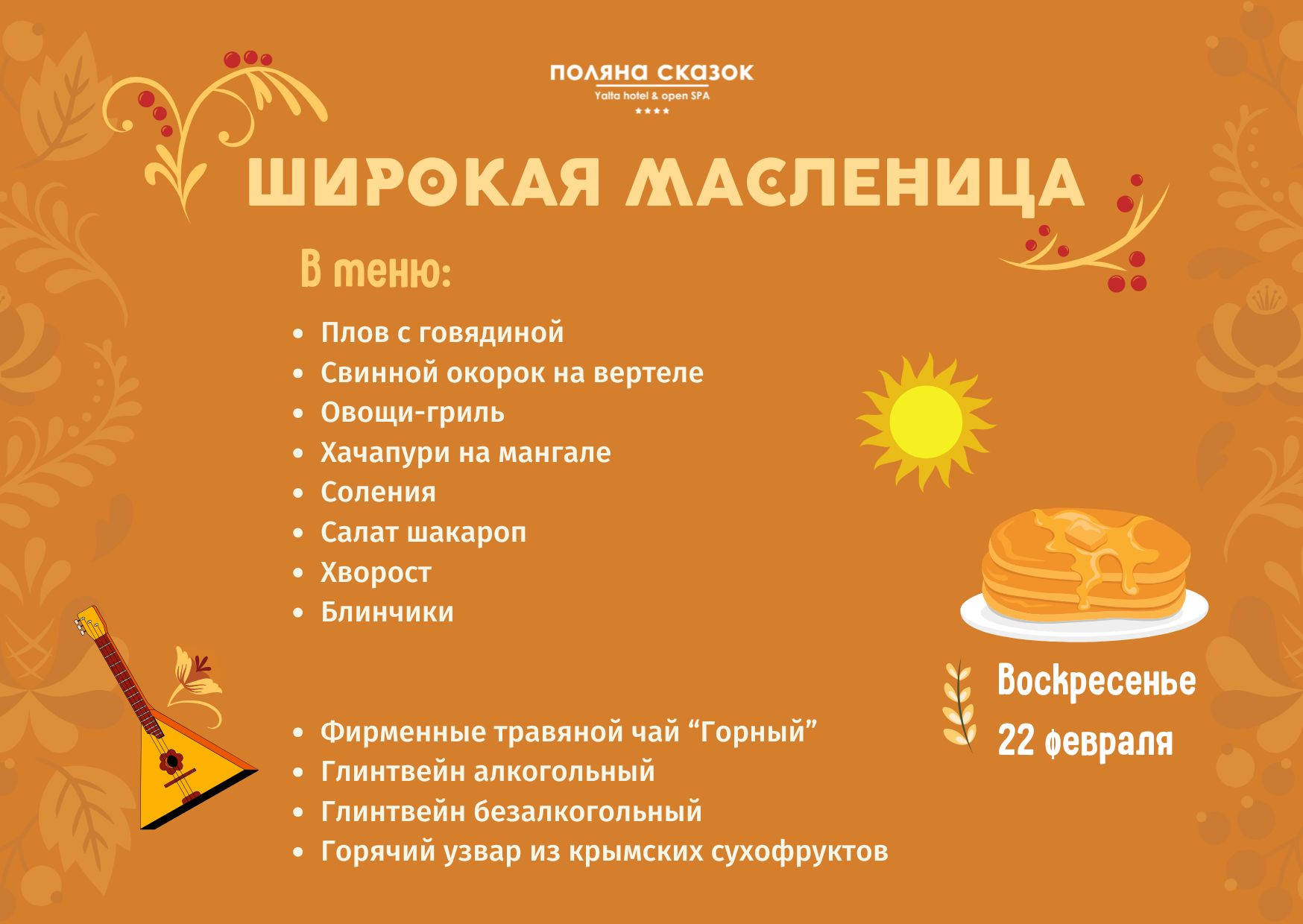 22 февраля в нашем отеле — двойной праздник! Приглашаем отпраздновать Широкую Масленицу и День Защитника Отечества: тёплая атмосфера, душевное общение и весёлые традиции.