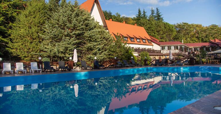 Эко-отель "Поляна Сказок" расположен в Ялте, в сердце Крымских гор, на границе с заповедником и в черте города.